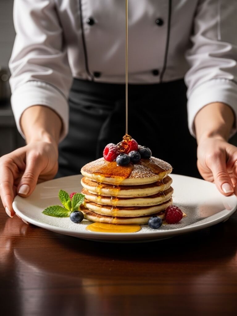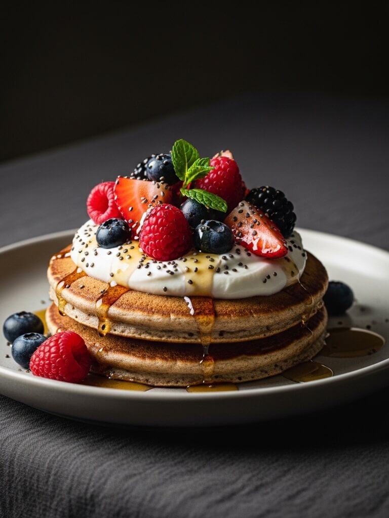 - La tour gourmande : Empilez trois ou quatre pancakes, nappez de sirop d’érable pur, et garnissez généreusement de baies fraîches (framboises, myrtilles, fraises).