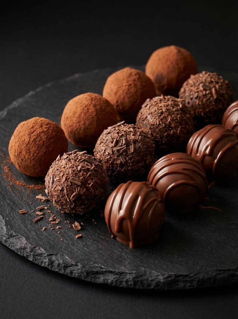 - À température ambiante (si enrobées de chocolat) : Si vos truffes sont enrobées de chocolat fondu (non simplement roulées dans du cacao), elles peuvent se conserver quelques jours à température ambiante (environ 18-20°C), à l’abri de la chaleur et de l’humidité. Cependant, le réfrigérateur reste plus sûr pour prolonger leur fraîcheur.