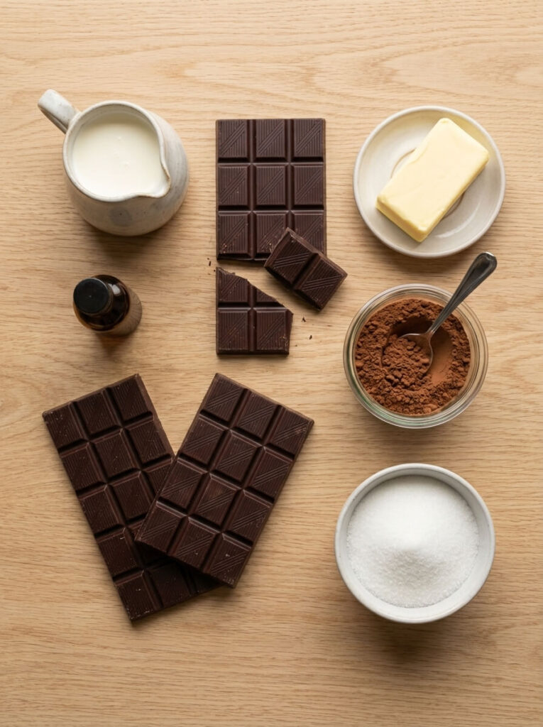 - 200g de chocolat noir de haute qualité (minimum 60% de cacao) : C’est l’âme de vos truffes. Privilégiez un chocolat avec une bonne teneur en beurre de cacao pour un fondant exceptionnel. Suggestion : Pour une note plus douce, remplacez une partie du chocolat noir par du chocolat au lait de bonne facture.