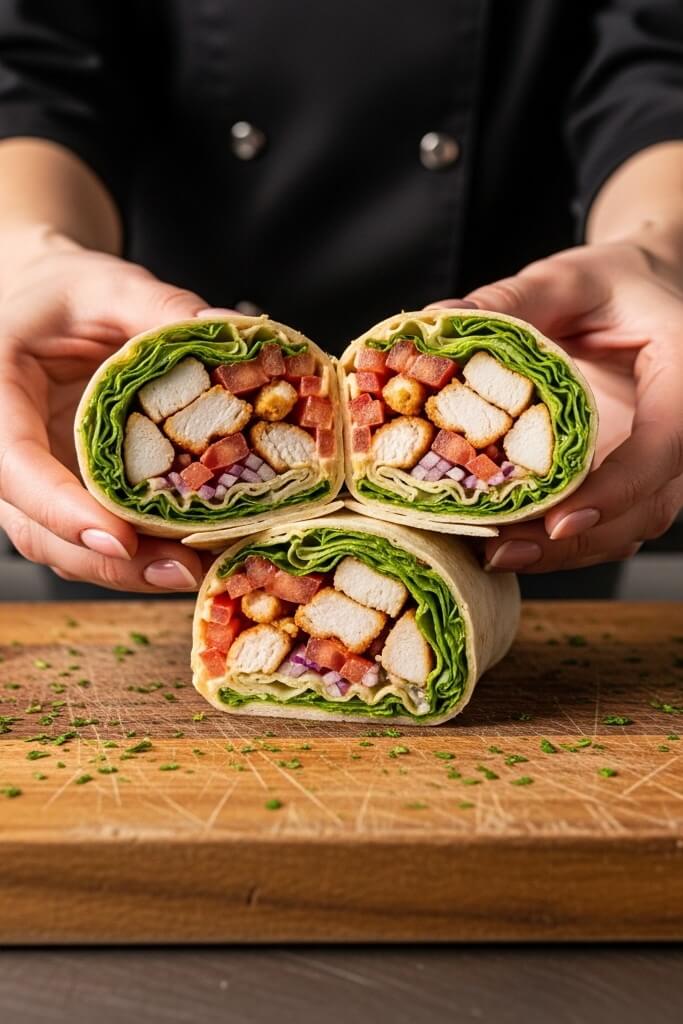 • Coupe diagonale élégante : Coupez toujours votre wrap en deux en diagonale. Cela rend la prise en main plus facile et révèle les jolies couches intérieures, aiguisant l’appétit visuel.