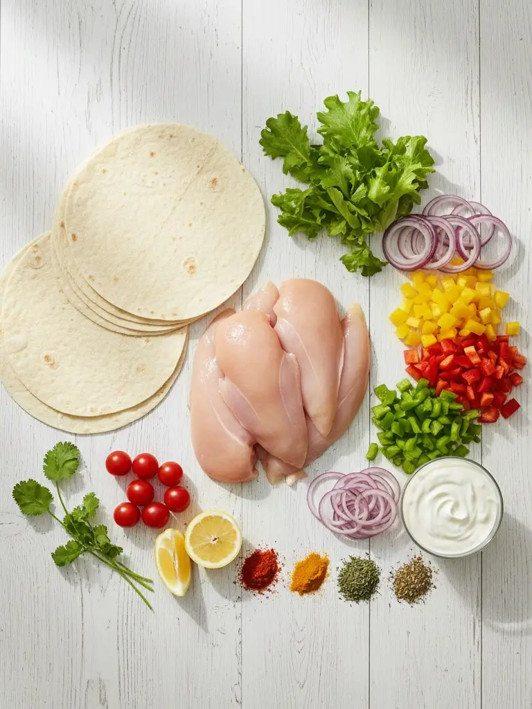Pour des wraps poulet qui feront sensation, voici une liste d’ingrédients de base, avec quelques suggestions pour laisser libre cours à votre créativité :