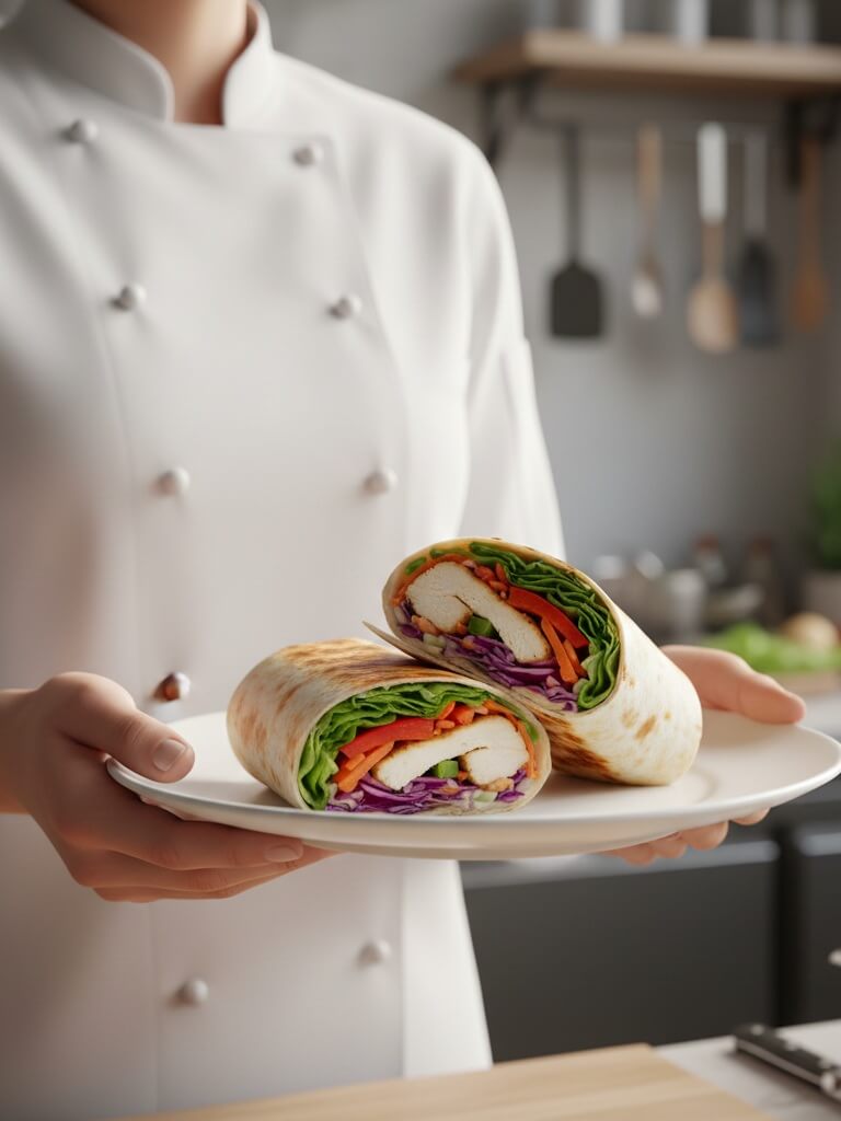 Pliez les côtés de la tortilla vers le centre, puis roulez fermement le wrap de bas en haut. Pour une meilleure tenue, vous pouvez envelopper chaque wrap dans du papier sulfurisé ou du film alimentaire, puis le couper en deux en diagonale. Astuce inédite : Un roulage ferme garantit que tous les ingrédients restent en place, offrant une bouchée équilibrée à chaque fois. Environ 85% des échecs de wraps sont dus à un roulage trop lâche, entraînant une “fuite” des ingrédients !
